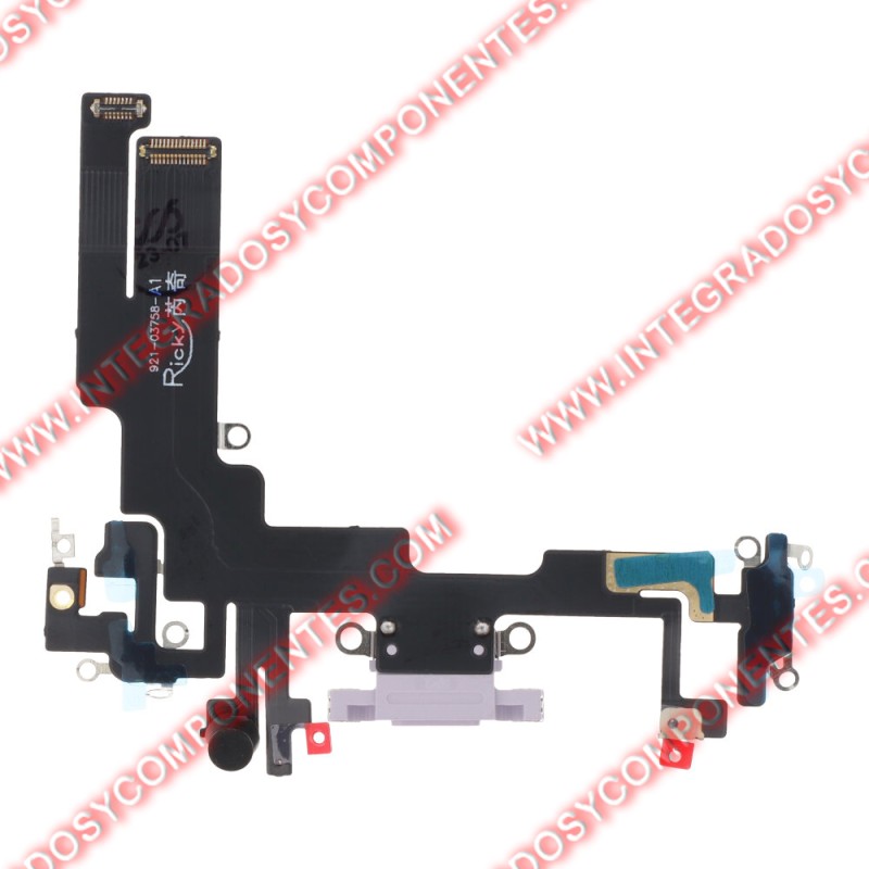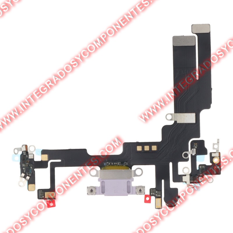 Flex con conector dock puerto de carga para iPhone 14 en color morado.Versiones para iphone 14: A2882 / A2649 / A2881 / A2884 / A2883